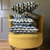 Dark inky almost black abstract pattern printed on a natural linen/cotton mix ground.