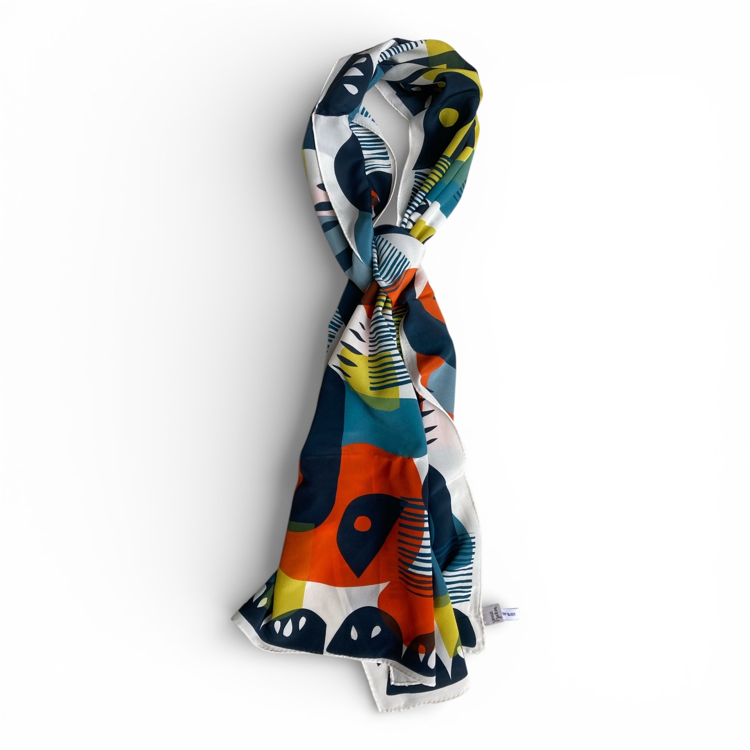 Crepe de Chine silk scarf with rolled edges. Based on an original screen print, printed digitally in England.